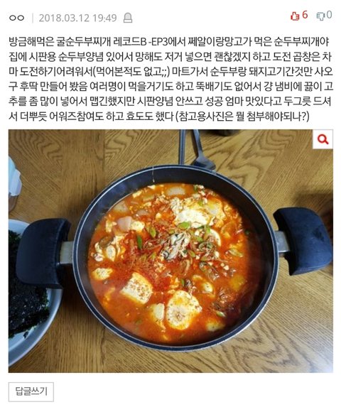 우우없상 : 쩨아리와 망고가 먹은 굴(순두부찌개)를 만든 러브.