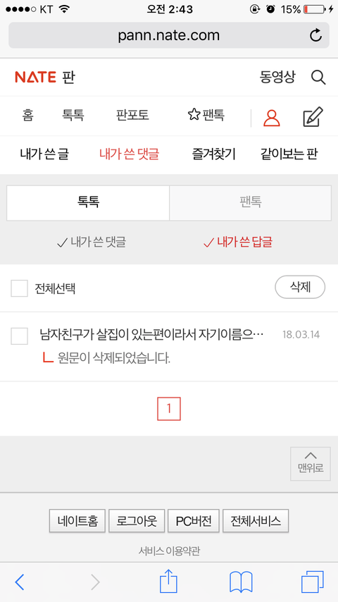 아니면 그 댓글에 전여자친구분으로 추정되는 분이 글을 남기셨는데 보시면 오픈채팅으로 대화하려고 링크걸어놨었거든요;; 그거때문에 없어진건가요;; 당황스럽네요