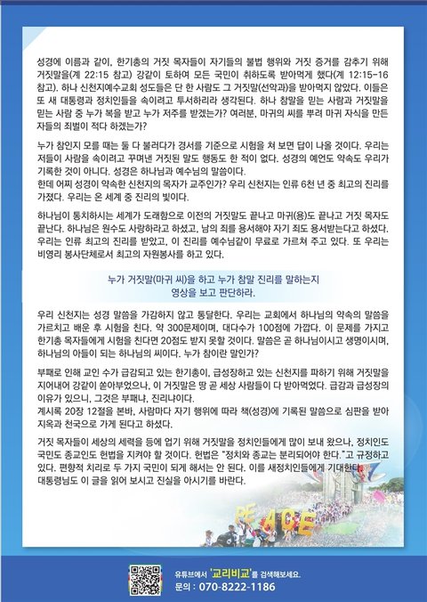 이렇게 신천지의 교리비교는 수많은 사람들에게 인정을 받았습니다.