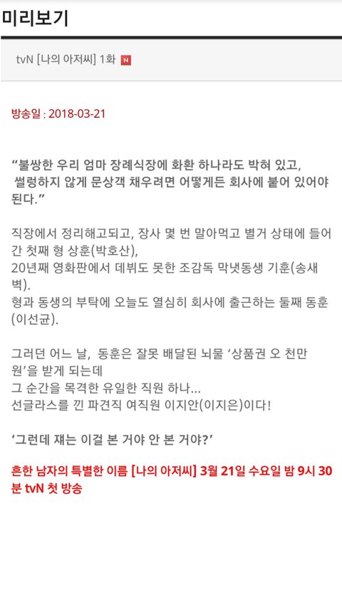 일단 이건 아무 관련 없는 3월 21일 첫방 대충 줄거리 올라온 거고 !