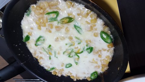 ㅡ콘치즈입니다ㅋㅋㅋ느끼함에 고추를 넣어 매콤함을 더했어요ㅎㅎ