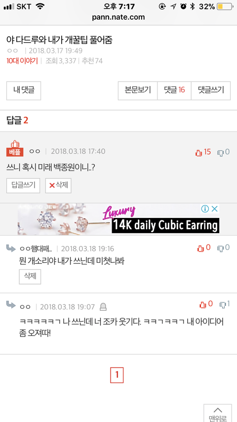 + 댓글 딱 하나 내가 썻는데 베플 ㅠㅠ 고마워 답글에 사칭 무엇??ㅋㅋㅋㅋ