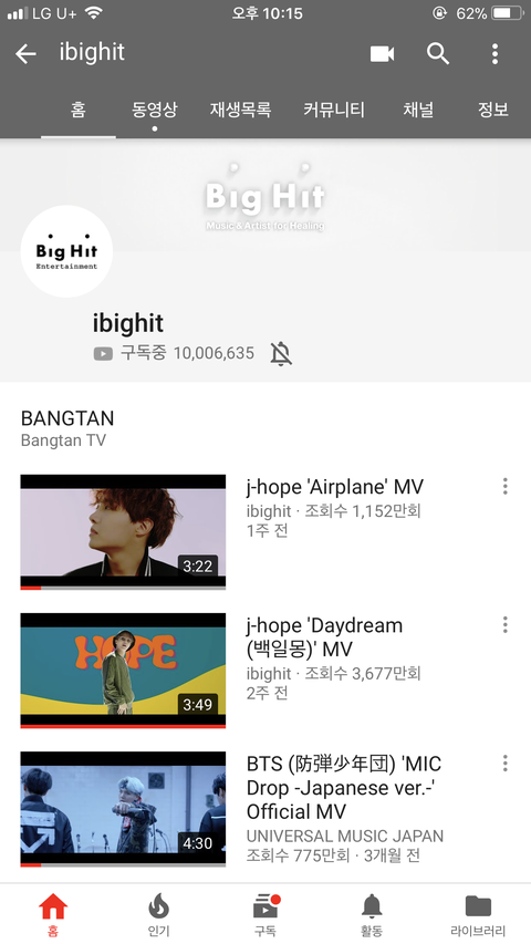빅히트 너튭 1000만