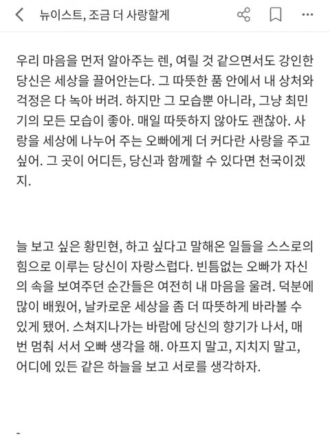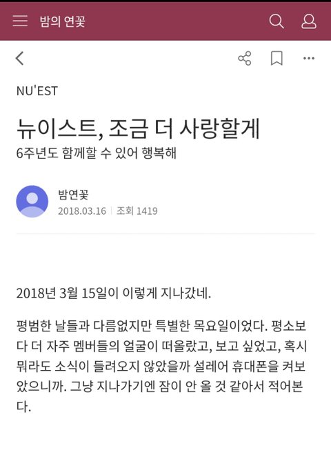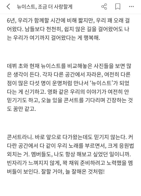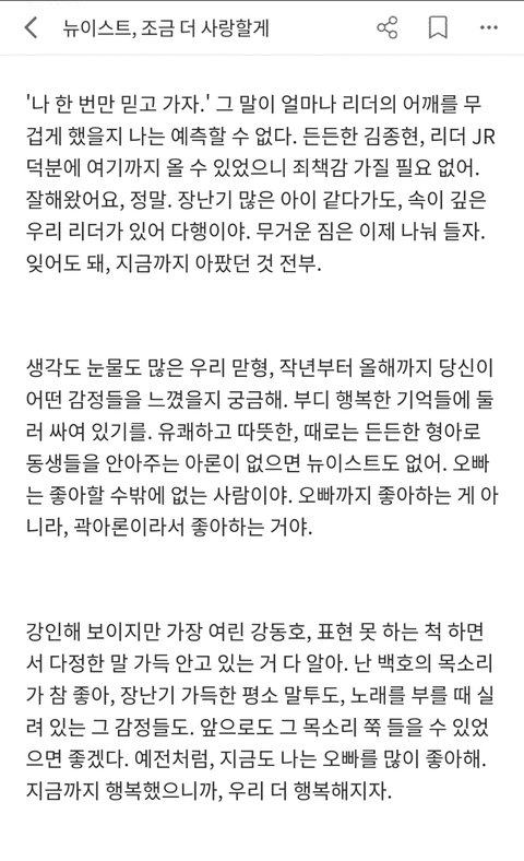 조상러브 6주년 글 (뉴이스트,조금 더 사랑할게)
