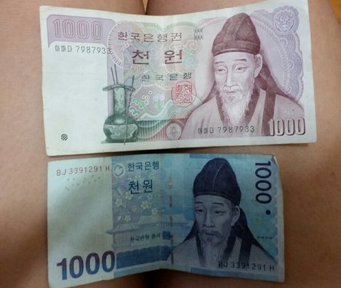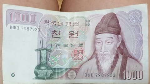 지금 돈 천원짜리랑 비교하니까 옛날 돈 진짜 큼.