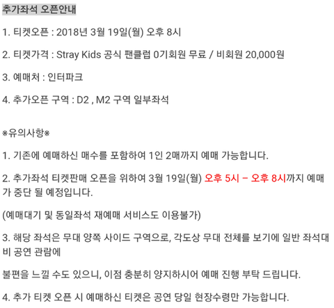 팬들이 추가오픈해달라고 항의해서 오늘 시야제한석 품