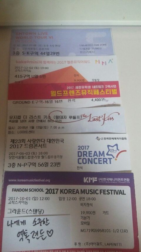 내가 로또로 엑소에 입덕후 처음으로 엑소를 보러가는거였구 이때 엑소 넘멋졌어.. 되게 많은 곡을 해서 기억에 남았어... 이때 처음으로 헤븐 들었구 로또 몬스터 등등 했었는데--- 이때 그라운드 뒤쪽이여서 하나도 안보였었고,..