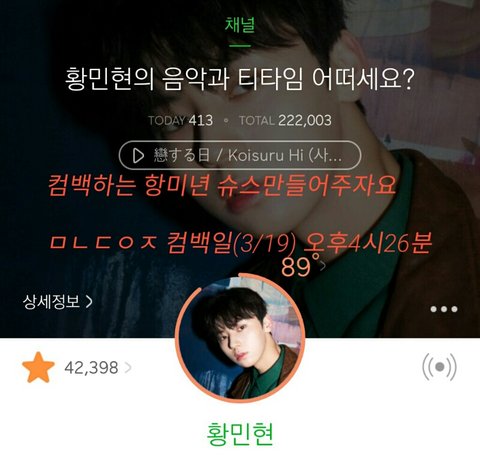 이제 1시간40분 후면 황민현 컴백곡 나온다