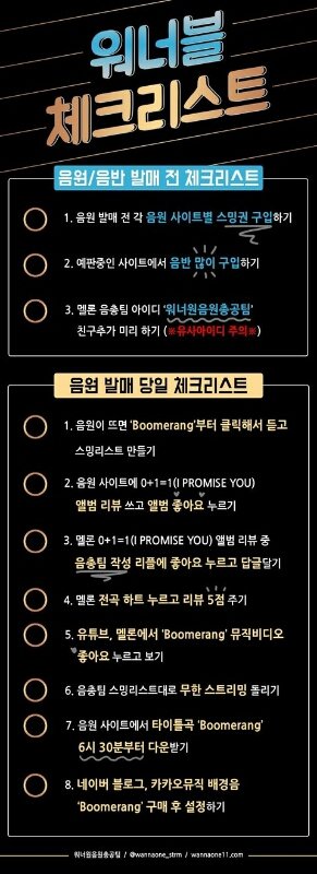 컴백쇼에서 차트 진입 확인할테니 준비하자는 의미로 컴백 준비사항 안내해❤