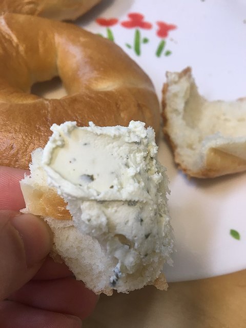 크림치즈 얹으니 살찌는 신기한 체험을 즉석으로 할 수 있어요.