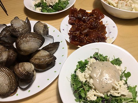 다이어트 한다고 두부샐러드와 피꼬막 데쳤는데..