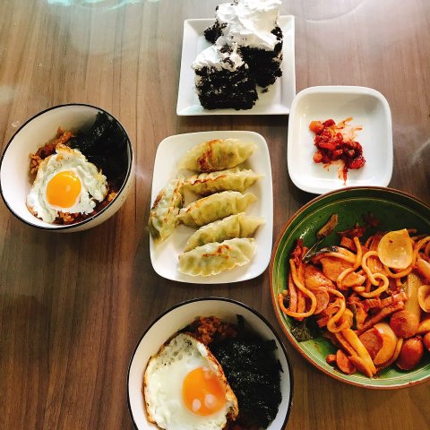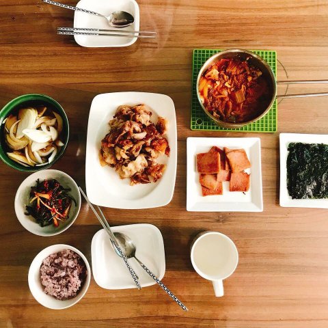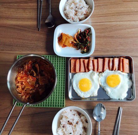 간장양파+삼겹살+파김치+김치찌개+스팸+김