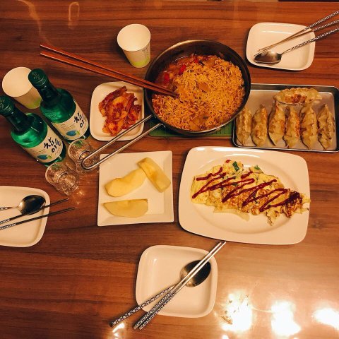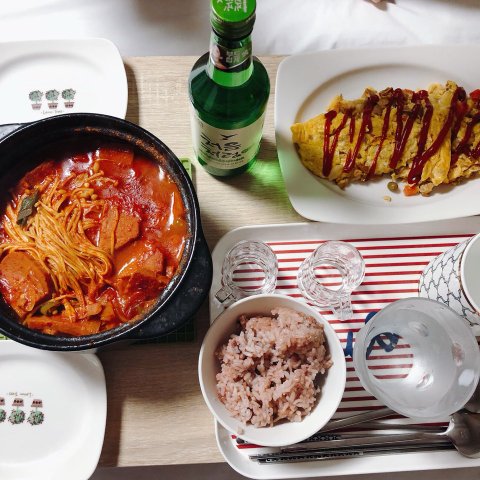 스팸고추장찌개 끓이고 오므라이스랑 소주랑 먹었네요
