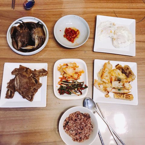 la갈비+간장게장+김치+오징어젓갈+계란후라이+육전