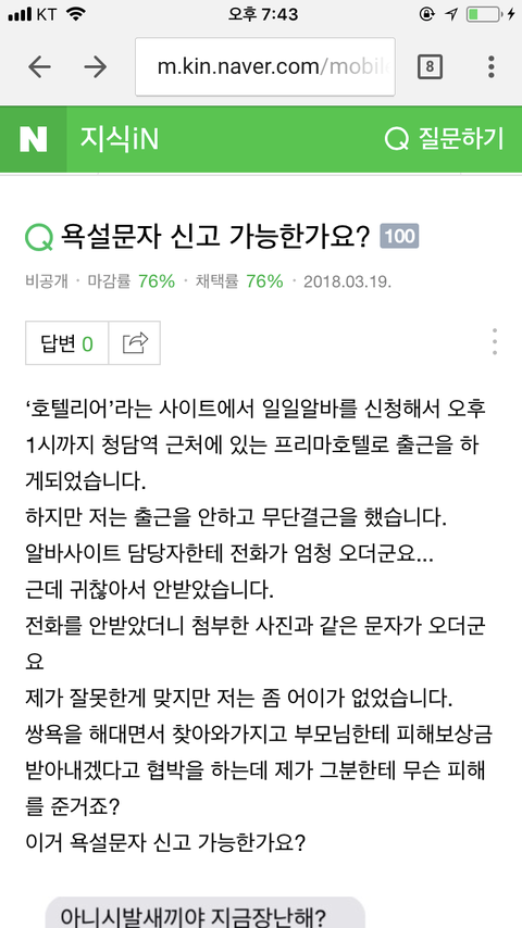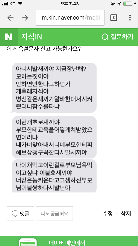 하루뒤에보는건 웃기네. 유투브도 안하고 부모님이나 윗사람 카톡도 그럴래?