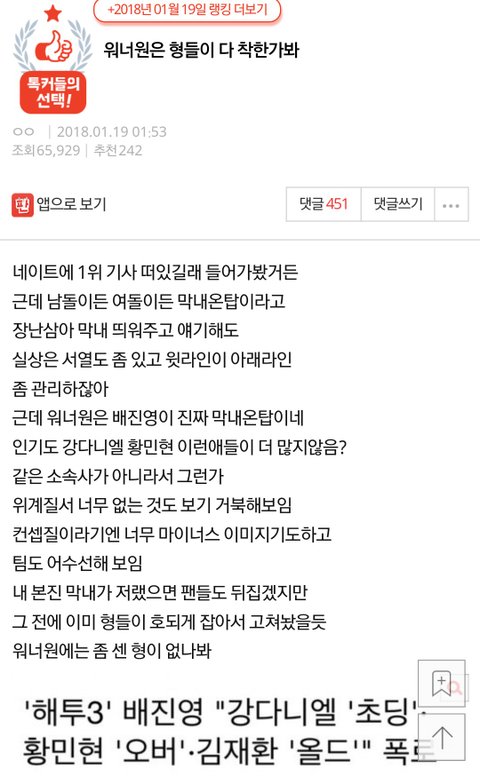 신인남돌 까글이 연예톡1위ㅋㅋㅋㅋㅋ얘네 조카 반응오나보네 견제오짐...