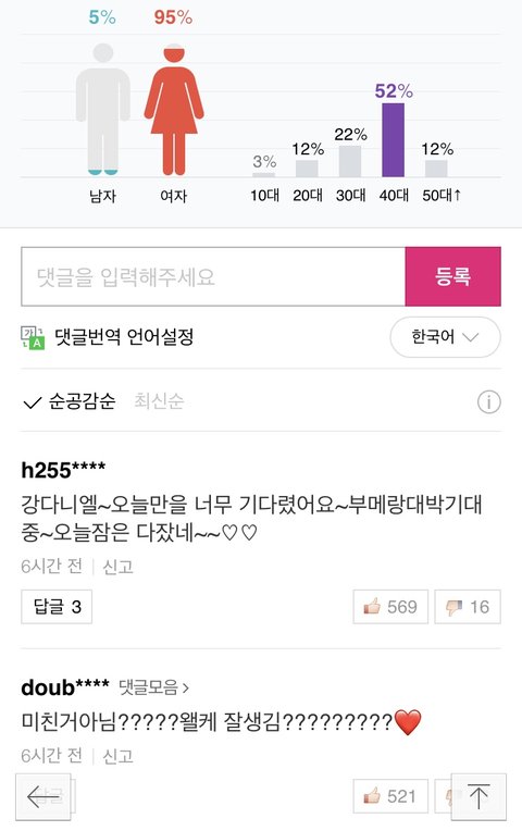 오늘자 워너원 기사 연령대 ㅋㅋㅋㅋ