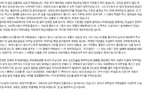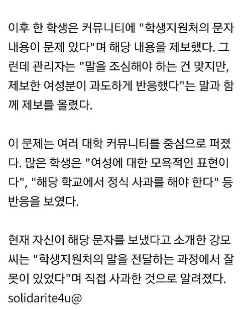 당시 4학년 재학생이었던 강모씨가 해당 문자 내용을 제보했고 다른 학생이 이에 문제를 제기했습니다.