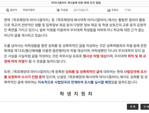 메르스 갤러리 저장소에 목포해양대학교 재학생(이하 피해자A)의 댓글을 비롯, 사진 수십장과