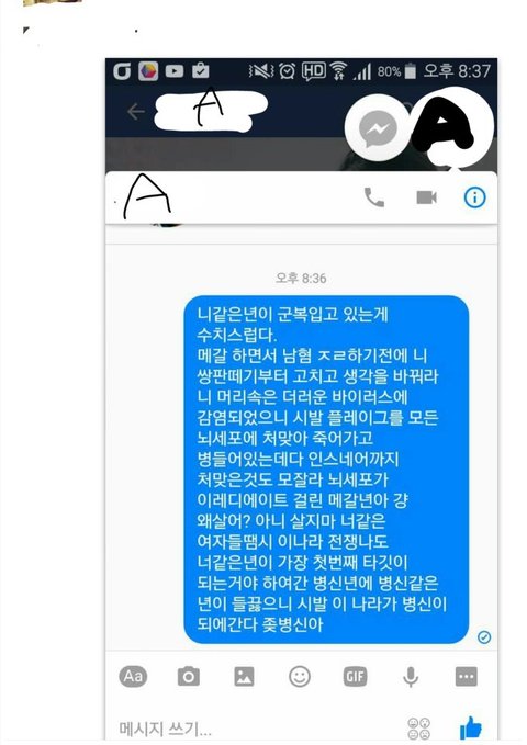 배를 칼로 찌르고싶다, 배때기를 찢어버리고 싶다는 둥의 협박 역시 있었습니다.