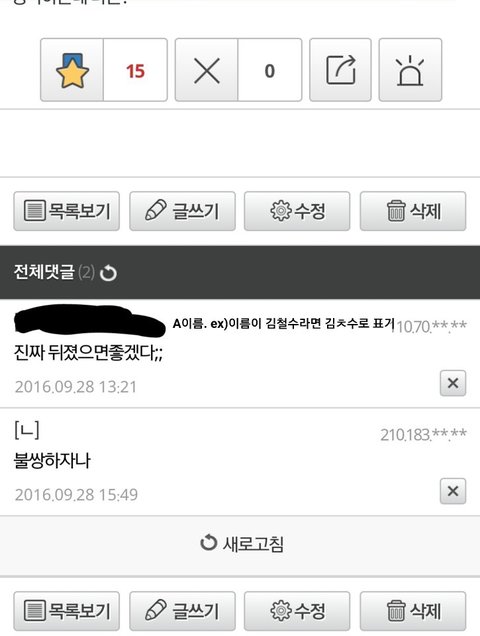 문제를 제기하는 댓글에는 직접 만나서 이야기하자고 했습니다.
