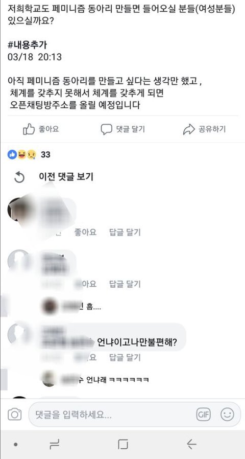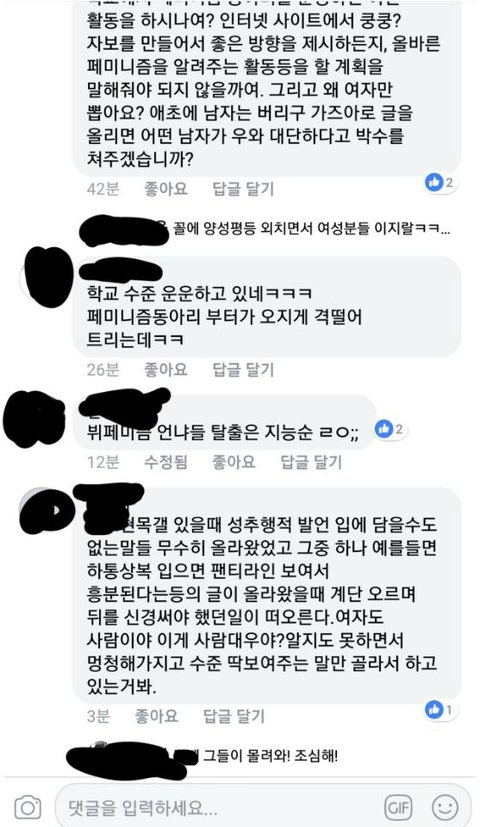 댓글로는 강간동아리를 만들자는 남학생의 댓글도