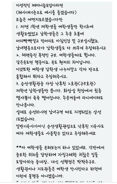 페미니즘 관련 동아리를 제안하는 글이 올라왔습니다.