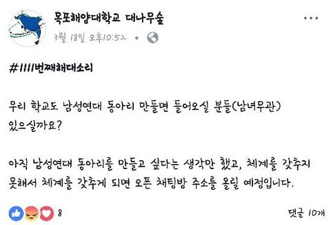 최근 목포해양대학교 대나무숲(이하 목대숲. 목대전 이후 생겨난 페이지)에