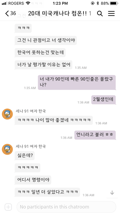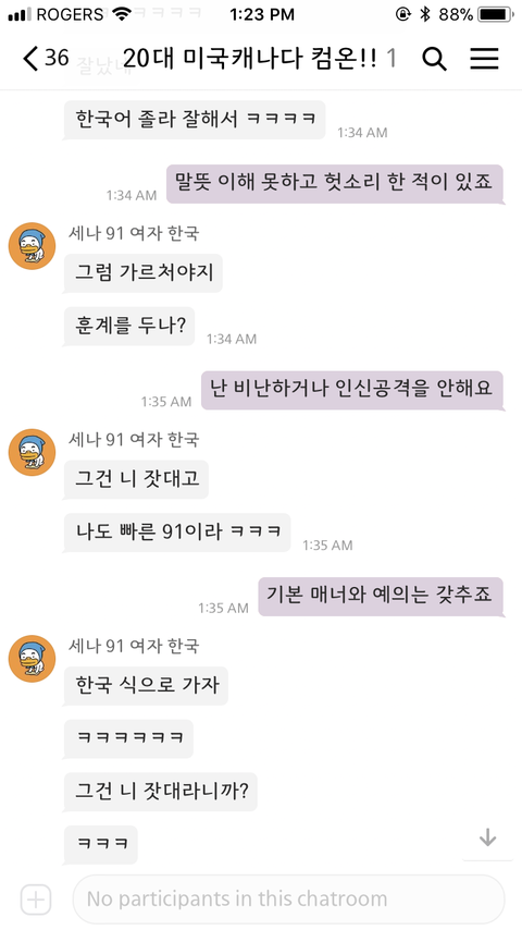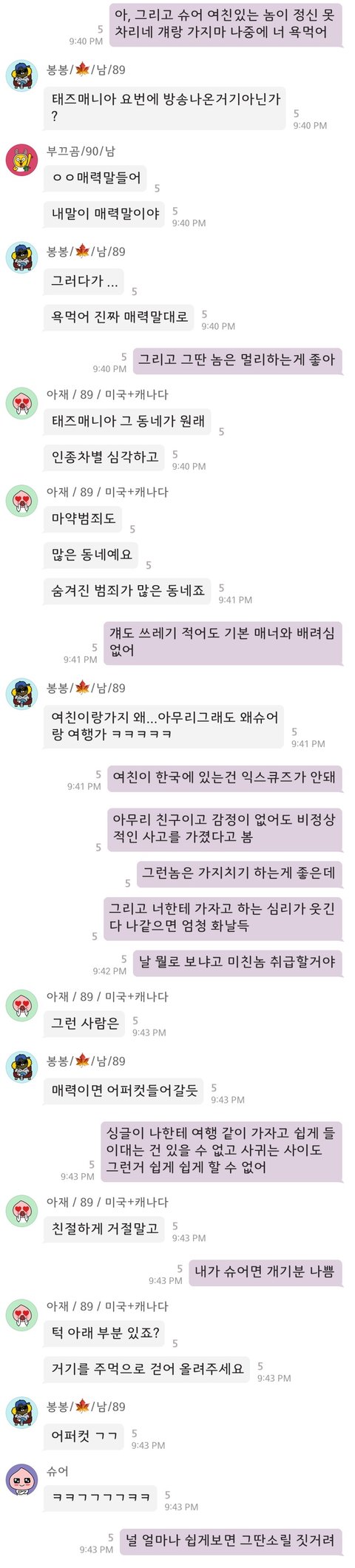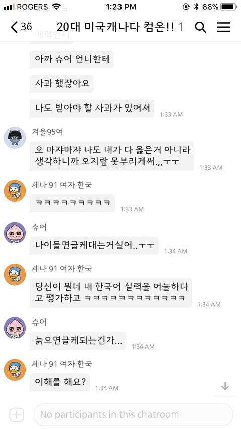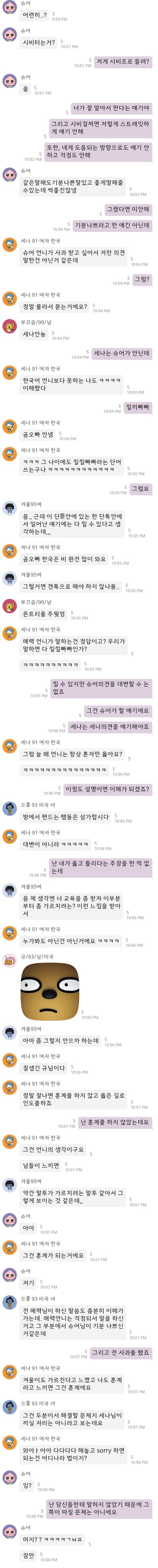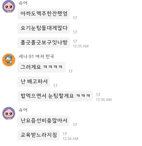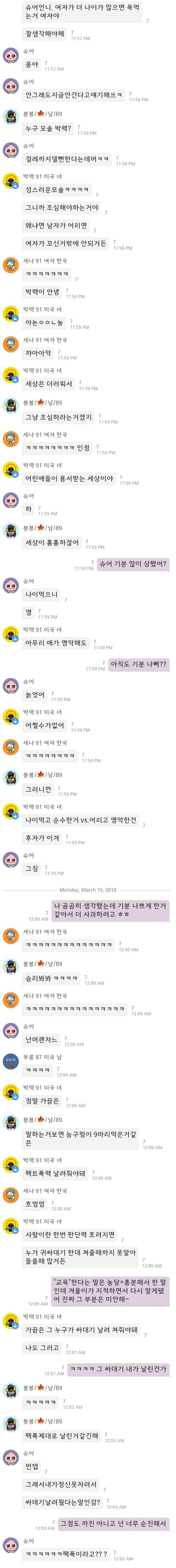 +추가대화내용에 내가 싸운 경험이 여러번 있는 것 처럼 말이 나오지만 말싸움 이번이 처음.오히려 싸움은 슈어라는 여자애가 다른 사람들과 이미 여러번 했고 그 대상들은 강퇴당하거나 나감.