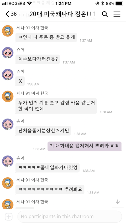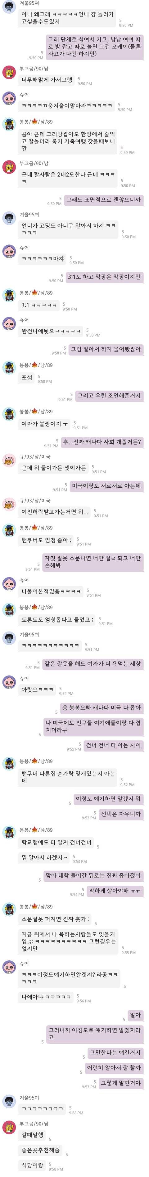 무개념 여럿 모이니까 정상인은 병ㅅ 되네요.카톡 내용 뿌려보라고 하니까 저보고 뿌리래서 올립니다.객곽적인 입장의 의견이 궁금하네요.
