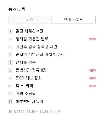 카이 네이버 뉴스 토픽 순위에 올라감ㄷㄷ