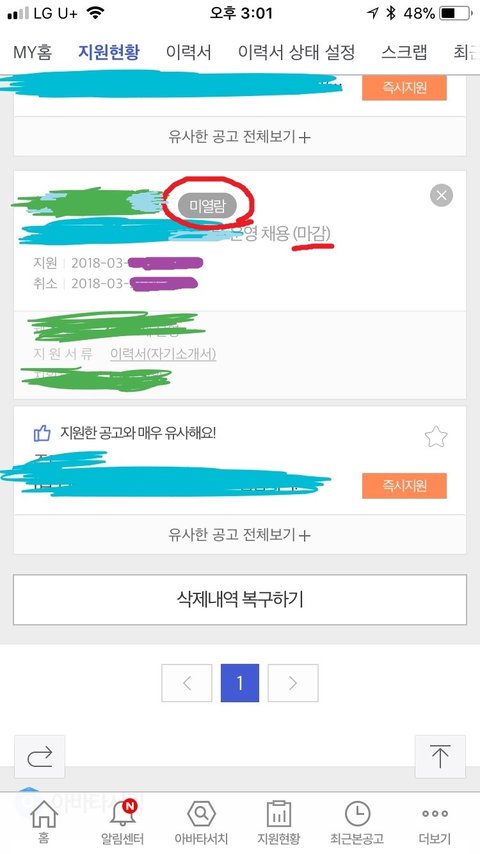그래도 읽기만 하더라구.... 그래서 아 서류 면접은 떨어졌나보다.... 라고 생각을 했었어3년 뒤인 올해 2월 부터 현재 3월까지 지원 공고가 올라와서 친구랑 같이 지원을 했었는데 이상한게 친구의 이력서는 계속 읽는데 내 이력서는 아예 읽어보질 않더라구