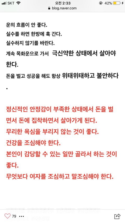 이때싶 끼워맞추지마 그냥 부정적인거 대부분 써놨구만