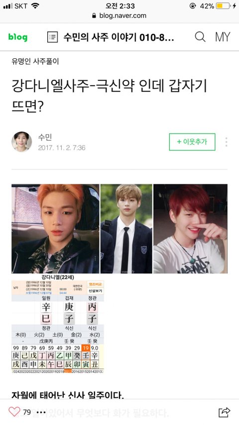 강다니엘 사주 소름이다