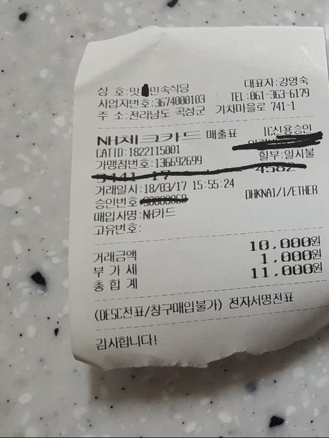 사진이라도 찍을걸 너무 당황해서 영수증밖에 못챙겻네요.. 아무튼... 곡성 기차마을 안에 민속식당 위생상태가 이러니 가실분들은 알고들 가시길..