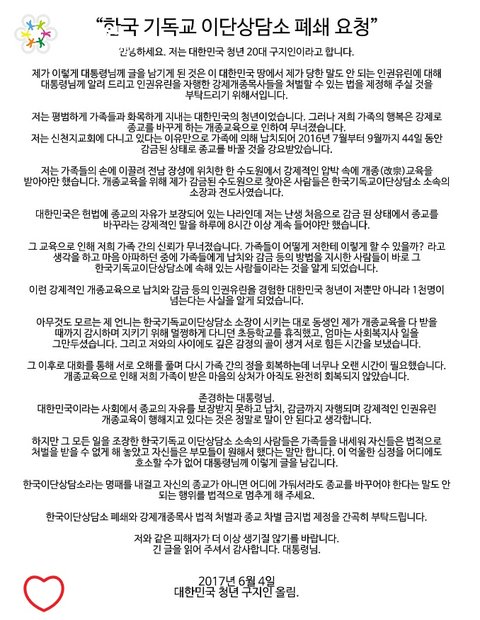 강제개종 금지법 촉구 운동이 일어났습니다