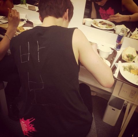 150322 등짝에 뭐라 써있는줄도 모르고 밥만 먹는 황민현♥
