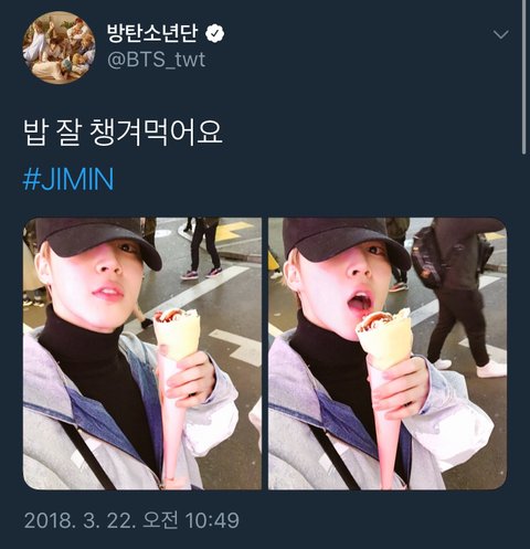 귀찮아서 밥 잘 안먹게되거든 ㅠㅠㅠ 오늘도 굶고있었는데 지민이 트윗보고 밥먹으러 집왔다 ㅎㅎ