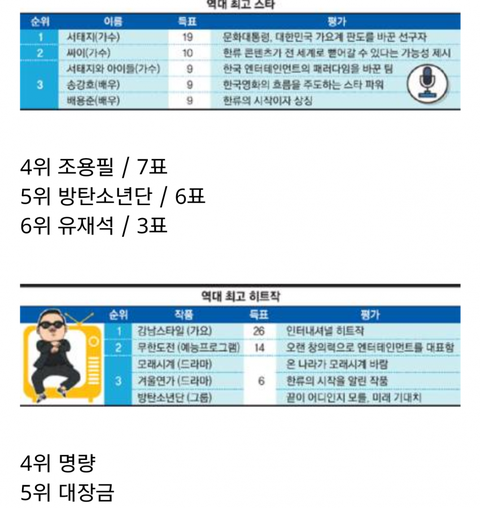 동아일보 역대 최고스타 5위 BTS