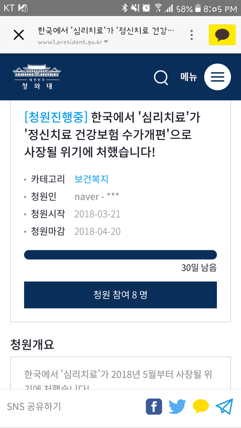 우리 말로만 맨날 우리나라 자살강국 자살 1위 말하지 말고 실제로 정말 현실성 있는 정신보건 수가법이 지정될 수 있도록 청원 동의하자!!!!