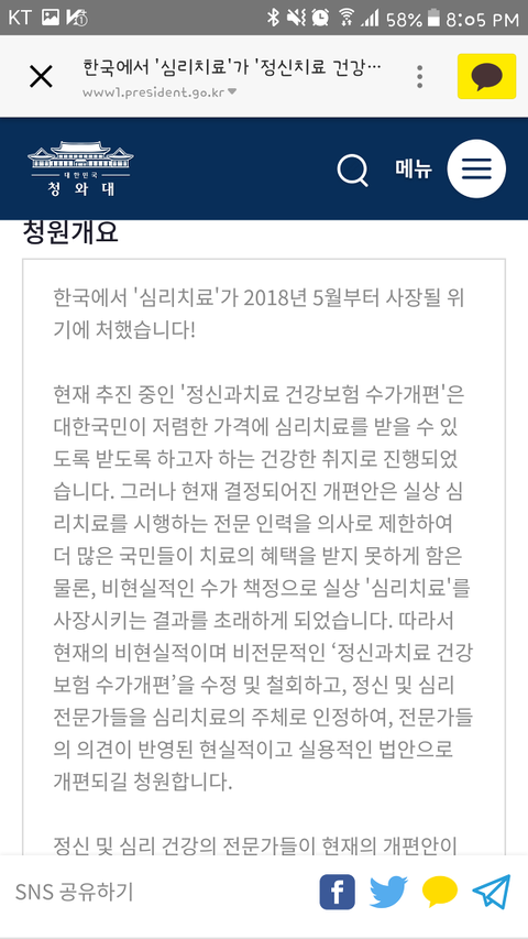 의도는 좋은데 현장의 전문가들 의견이 전혀 반영되지 않은 탁상공론적 정책이 통과되서 심리치료를 원하는 대한국민은 물론 이 서비스를 제공하는 정신건강전문가들에게도 폐를 끼치고 있어!!!!