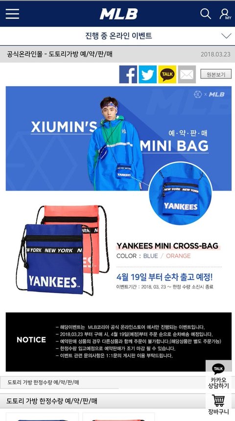 시우민 도토리가방 온라인예약판매 떴당 ㅋㅋ