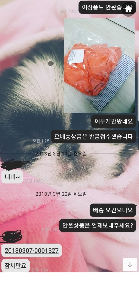 그때쯤 둘째배송이옴 또 옷이 하나가 안옴