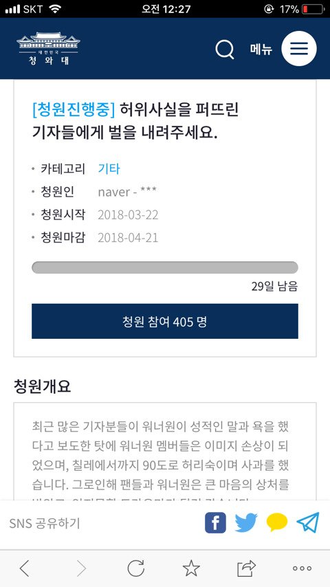 워너원 팬들 청와대에 청원중