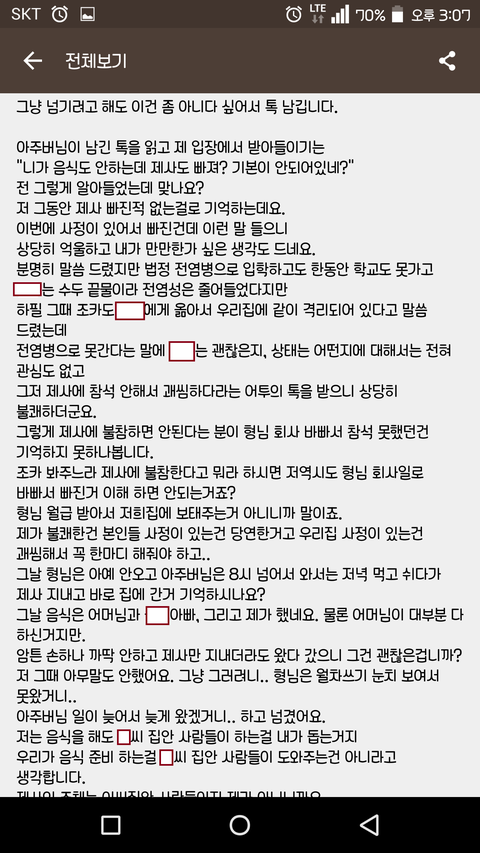 내가 보낸 저 톡으로 인해 지금 시댁 식구들 열 받은 듯.
