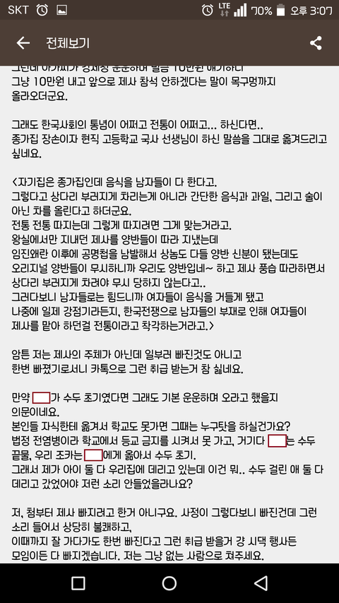 내가 하고픈 말은 내가 그동안 제사 한번이라도 빠졌으면 말을 안해.