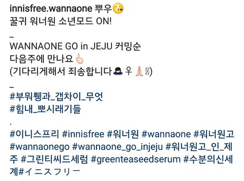 https://www.instagram.com/innisfree.wannaone/ 힘내 뽀시래기들 ㅠㅠㅠㅠㅠ
