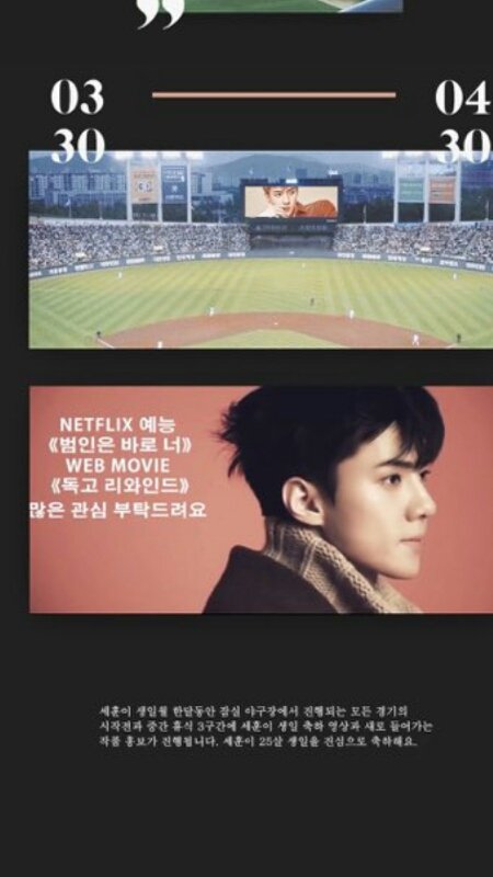 진행되는모든경기의 시작전과 중간휴식에 세훈이생일축하영상과 작품홍보가 진행