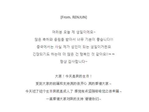 생일 축하해 런쥔아 하루의 마무리도 행복하길 바라~