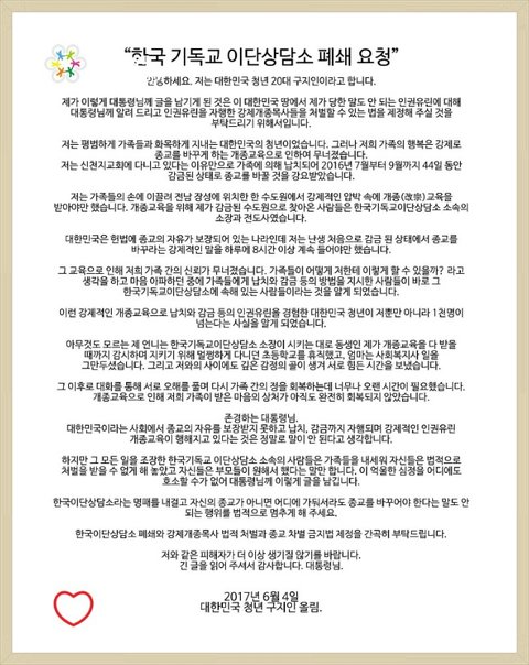 <대한민국의 3가지 이슈!!> 강제개종금지법 제정 촉구